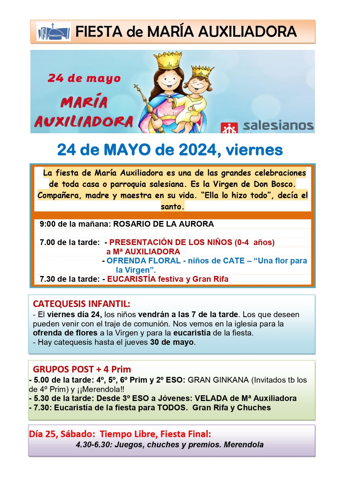 HORARIO FIESTA MARIA AUXILIADORA 2024
